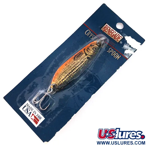 Rungon vasaroitu hunajakennokuvio on tämän Renegade Crystalina Spoon -lusikan tunnusomainen piirre, joka on suunniteltu heijastamaan ja hajottamaan valoa vedessä. Näyttävä Vasaroitu kulta / Oranssi -viimeistely antaa vieheelle erottuvan profiilin eri vesien kirkkausasteilla. Tämä Yhdysvalloissa valmistettu Honeycomb Series -sarjan yksilö on pituudeltaan 5,5 cm (2 1/4") ja painoltaan 11 g (2/5 oz), mikä tekee siitä monipuolisen valinnan taimenen ja muiden petokalojen kalastukseen. Tuotekoodilla 10239 tunnistettu uistin on alkuperäisessä vintage-pakkauksessaan. Kunto on 6, eli lusikka on käyttämätön ja säilyttänyt tehtaanjälkeisen ulkonäkönsä. Alkuperäiset osat, mukaan lukien vatsapuolen kolmihaarakoukku ja uistinrengas, ovat tallella ja osoittavat amerikkalaisen valmistuksen laadun.