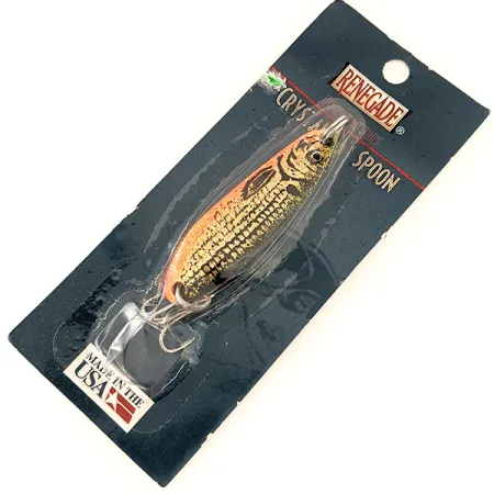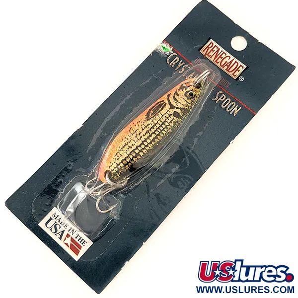 Tämä 5,5 cm (2 1/4") pituinen metallinen lusikkauistin on varustettu erottuvalla kennokuviolla, joka on suunniteltu erityisesti manipuloimaan valon heijastuksia. Renegade Crystalina Spoon - Honeycomb Series painaa 11 g (2/5 oz), tuotekoodilla RCS114 GT, ja siinä on kullan ja oranssin värisiirtymä mustalla suomukuviolla. Tämä yksilö on käyttämätön alkuperäispakkauksessaan, jonka on valmistanut Renosky Lure, Inc. Indianassa, Pennsylvaniassa. USA:ssa valmistettu viehe on varustettu korkealaatuisella Eagle Claw -koukulla, ja siinä on pehmeä, opaalinhohtoinen viimeistely, joka jäljittelee saaliskalojen realistista ulkonäköä erilaisissa vesiolosuhteissa.