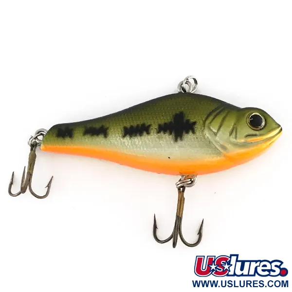 17 gramman (3/5oz) painollaan Renegade Natural Runner on vakuuttava ilmestys vesipatsaassa uppoavana rattlin-vieheenä. Tässä yksilössä on Baby Bass -väritys: oliivinvihreä selkä tummilla pystyraidoilla, jotka vaihtuvat vaaleisiin kylkiin ja kirkkaan oranssiin vatsaan. Pituudeltaan 7 cm (2 3/4") viehe kuuluu tuotekoodiin 8128 ja soveltuu erinomaisesti sekä heittoon että uisteluun. Uppoava rakenne mahdollistaa säädettävän uintisyvyyden, jolloin kalastaja voi hallita iskualuetta eri lajeille, kuten kuhalle, hauelle, taimenelle ja lohelle. Koukut ja renkaat ovat erinomaisessa kunnossa, ja pinta on puhdas ja ehjä (kuntoarvio 5/5). Selkäkiinnitys ja sisäinen räminäkoneisto tarjoavat syvän veden petokaloille suunnatut mekaaniset ja akustiset ominaisuudet.