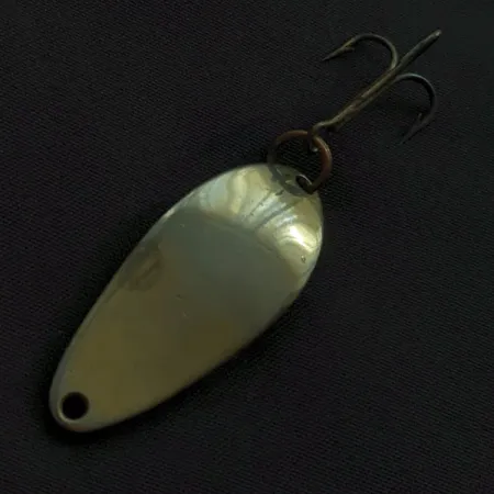Kiillotettuun koveraan pintaan lyöty 'A SENECA LURE' -leima kertoo tämän 4 cm (1 1/2") pituisen lusikan olevan aito palanen amerikkalaista kalastushistoriaa. Tämä 7 gramman (1/4 oz) painoinen yksilö kantaa tuotekoodia 23062 ja sen kirkas hopeapinta heijastaa valoa tehokkaasti. Rakenne on edelleen tukeva: vankka kuparinvärinen uistinrengas yhdistää metallirungon tummaan kolmihaarakoukkuun. Keräilijät tunnistavat heti 'WIGL-LURE' -merkinnän, joka on alkuperäisen yhdysvaltalaisen Seneca-tuotannon tunnusmerkki. Tämä Seneca Little Cleo on säilynyt erittäin siistinä, saaden kuntoluokituksen 4/5 sen heijastavan pinnan ja selkeiden, syvien stanssausten ansiosta. Uistimen yläosan siiman kiinnityspiste on kulumaton, ja paino keskittyy perinteiseen kyynelmuotoon. Kolmihaarakoukun tumma pinnoite luo terävän visuaalisen kontrastin kirkkaaseen metallirunkoon.
