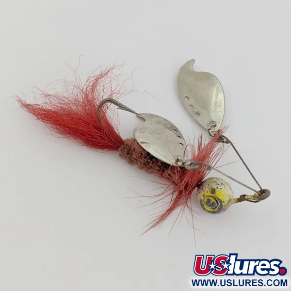 Nikkelilehtiin on lyöty merkinnät "SHANNON" ja "PAT PEND USA", jotka ovat Jamisonin 1920-luvulta 40-luvulle tuotetun muotoilun tunnusmerkkejä. Tämä 5 cm Shannon Twin Spinner yhdistää kaksoislehdet kirkkaanpunaiseen höyhenpyrstöön ja ruskeaan chenille-runkoon. 10 g painava lyijypää kantaa ajan patinaa kelta-mustalla maalipinnallaan (kuntoarvio 4/5). Lankarunko sijoittaa lipat rungon yläpuolelle, mikä on suunniteltu kalastukseen tiheässä kasvustossa tai kaislikossa. Punaiset höyhenet ovat pysyneet tuuheina ja kirkkaina, tarjoten jyrkän kontrastin nikkeliviimeistelylle. Tuotekoodilla #24491 tunnettu Shannon edustaa varhaisia innovaatioita ruohosuojatuissa vieheissä.