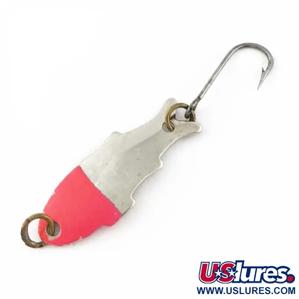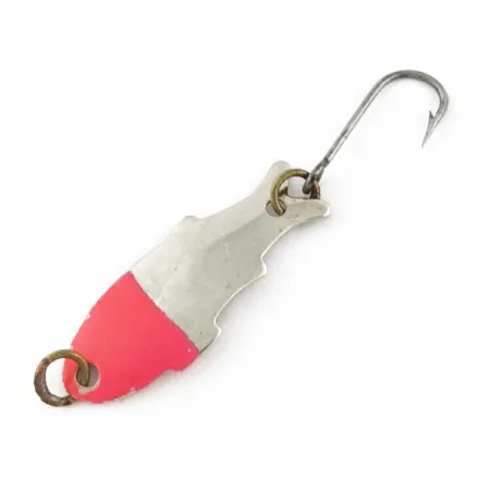 Tämän 1/32 unssin (1 g) lusikkauistimen kärki on viimeistelty kirkkaanpunaisella värillä, joka luo voimakkaan kontrastin kiillotetulle nikkelirungolle. Shoff’sin Yhdysvalloissa valmistama Triple Teazer tunnetaan metalliin stanssatusta kalan siluetistaan. Vieheen pituus on 1 1/4" (3 cm), ja se on varustettu ylöspäin suunnatulla yksittäiskoukulla sekä messinginvärisillä uistinrenkailla. Tuotekoodi 24071 yksilöi tämän nimenomaisen ultralight-mallin, joka on kehitetty erityisesti taimenen ja ahvenkalojen vaatimaan hienovaraiseen tarjoiluun. Heijastava nikkelipinta yhdistettynä mattaan punaiseen osaan toimii visuaalisena ärsykkeenä. Tämä yksilö on poikkeuksellisen hyvin pidetty, ja se on saanut 5/5-luokituksen ehjän viimeistelynsä ja puhtaiden metalliosien ansiosta. Yksittäiskoukku on kiinnitetty peräpäähän, kun taas kärkisilmukka takaa tukevan kiinnityksen ohuille siimoille.