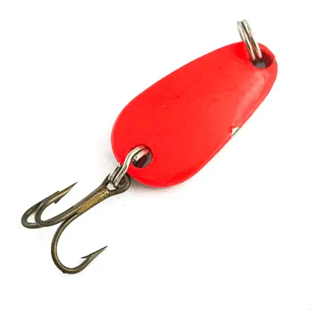 Kirkas fluoresoiva pinnoite peittää tämän 2,5 cm (1") pituisen Sølvkroken-vieheen rungon, mikä tekee siitä erottuvan valinnan hämäriin olosuhteisiin. Tarkalleen 4 g (1/8 oz) painavassa lusikassa on "Red UV / Silver" -väri, joka reagoi voimakkaasti ultraviolettivaloon muuttaen näkyvän punaisen hohtavaksi loisteeksi. Tämä tuotekoodilla 6264 listattu malli on kuntoluokitukseltaan 5/5, ja sen pinta on täysin puhdas ja virheetön. Pronssattu kolmihaarakoukku on kiinnitetty tukevasti vahvalla uistinrenkaalla, mikä vastaa norjalaiselta kalastusvälinevalmistukselta odotettua laatua. Koska UV-reaktiiviset ominaisuudet on upotettu suoraan pigmenttiin, uistin säilyttää näkyvyytensä jopa sameassa vedessä.