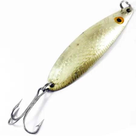 10 gramman paino antaa tälle norjalaisvalmisteiselle lusikalle tarvittavan upottavuuden tavoitesyvyyksien saavuttamiseksi. 7,5cm pitkä Sølvkroken Storlaksen on varustettu kirkkaalla kultaisella viimeistelyllä, joka on säilynyt erinomaisessa 5/5-kunnossa. Uistimen etupuolella on realistinen suomukuviointi ja selkeä oranssi silmä mustalla pupillilla, kun taas kääntöpuoli on sileä ja korkeakiiltoinen. Tuotekoodilla 3355 tunnistettava uistin on varustettu vahvalla kolmihaarakoukulla ja kestävillä uistinrenkailla. Pitkänomainen profiili on skandinaavisen muotoilun tavaramerkki, joka on räätälöity erityisesti lohijokien koviin virtauksiin.