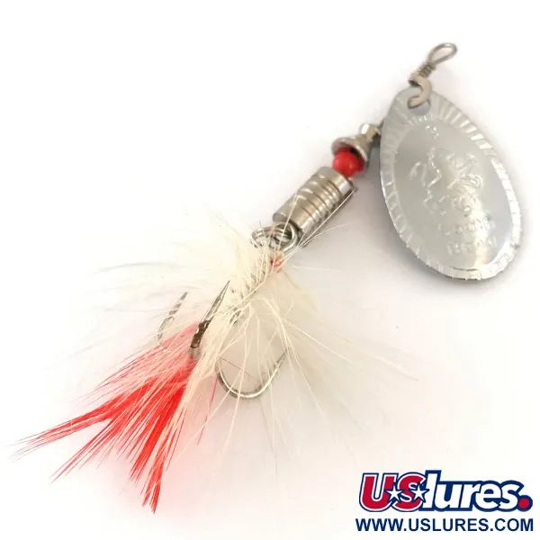 1/4 unssin (7 g) paino antaa tälle amerikkalaisvalmisteiselle South Bend 3 -lipalle riittävästi massaa pitkiin heittoihin. Kiiltävä nikkeliviimeistely peittää ovaalinmuotoisen lippalehden, johon on selvästi lyöty valmistajan leima. Painotetun, uritetun metallirungon yläpuolella pieni punainen helmi toimii välikkeenä ja visuaalisena iskupisteenä. Tämän 7 cm (2 3/4") pituisen vieheen peräpäässä on kolmihaarakoukku, johon on sidottu taitavasti luonnonvalkoisia höyheniä ja ripaus punaista koukun varren lähelle. Tuotekoodilla 4184 varustettu lippa on 5/5-kunnossa, eikä siinä ole merkkejä aiemmasta käytöstä. Sekä lehden että rungon osien nikkelipinnoite on säilyttänyt alkuperäisen kiiltonsa, mikä on ominaista South Bendin puolivälin vuosisadan tuotantostandardeille.
