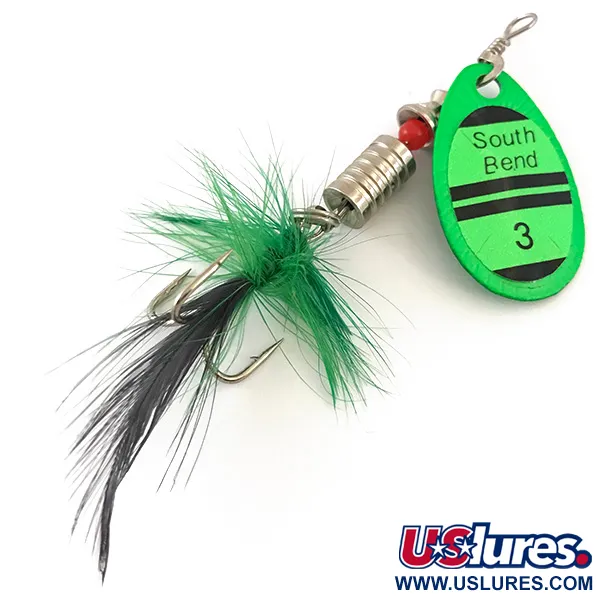 Museoarkisto: South Bend 3 UV Lippa, UV-Vihreä, 7g, Höyhenkoukku, #4186