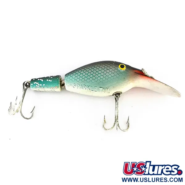 Tämä 8 cm (3 1/4 tuumaa) pitkä nivelletty Eppinger-vaappu on varustettu erottuvalla harmaan ja vaaleansinisellä suomukuviolla kermanvalkoisessa vatsassa. 10 g (1/3 oz) paino tekee siitä monipuolisen valinnan sekä heitto- että uistelukalastukseen hauelle, kuhalle tai taimenelle. Tuotekoodilla 8108 varustetun vieheen kylkeen on selkeästi stanssattu nimi ”SPARKLE TAIL”, ja se vastaa nimeään kimaltelevalla pyrstöosallaan. Metallisen uintilevyn lähellä on kirkkaanpunainen tehoste ja vaapussa on klassiset keltaiset silmät. Tämä USA:ssa valmistettu yksilö on 5/5-kunnossa, ja siinä on erittäin siisti maalipinta ja alkuperäiset koukut. Rungon ja pyrstön välinen nivel on yhdistetty kestävillä metallilenkeillä, mikä takaa tämän vintage-löydön rakenteellisen kestävyyden.