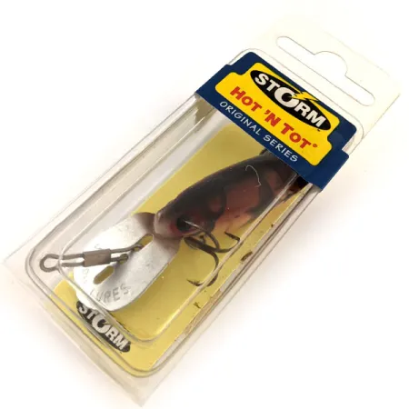 Tämä 6,5 g (1/4 oz) painava metallilevyllinen malli on klassikko Storm Original Hot'N'Tot -sarjasta. Tässä 5 cm (2") vaapussa on silmiinpistävä oranssi runko ja voimakkaat mustat pystyraidat. Tämä korkeakontrastinen kuvio on suunniteltu näkymään hyvin erilaisissa vesiolosuhteissa. Kuntoluokan 6 tuotteena viehe on käyttämätön ja se on alkuperäisessä sini-keltaisessa ikkunapakkauksessaan. Suurikokoiseen metalliseen uintilevyyn on stanssattu "HOT 'N TOT" -logo, joka on USA:ssa valmistetun alkuperäissarjan tunnusmerkki. Tämän mallin uintisyvyys on tyypillisesti 2,1–4,3 metriä (7–14 jalkaa) riippuen uistelunopeudesta ja siiman paksuudesta. Varustukseen kuuluu kaksi vatsapuolen kolmihaarakoukkua ja uintilevyyn valmiiksi kiinnitetty lukkoleikari. Pakkauksessa on tuotekoodi 11931 ja Storm-brändäys, mikä tekee tästä hienon keräilykohteen alkuperäisestä sarjasta kiinnostuneille.