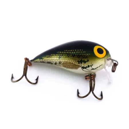 Tämä 5,5 g (3/16 oz) painava kompakti crankbait edustaa Stormin klassista tuotantoa ajalta ennen Rapalan yritysostoa. Baby Bass -väri on säilynyt kauniisti tässä 4 cm (1 1/2") rungossa, jossa on tummanoliivinvihreä selkä, yksityiskohtainen suomukuviointi kyljissä ja kermanvärinen vatsa. Tuotekoodilla 10223 varustettu ultrakevyt malli on suunniteltu matalan veden kalastukseen, ja sen uintisyvyys on 0 - 0,5 m. Voimakas sisäinen räminä antaa sille selkeän akustisen profiilin kelattaessa. Valmistettu USA:ssa, vieheessä on ikoniset keltamustat silmät ja kirkas uintilevy. Kuntoarvio on 5/5, sillä pinta on loistavassa kunnossa ja alkuperäiset koukut huollettu hyvin. Tämä malli on täydellinen esimerkki Stormin suunnittelusta mataliin ja kasvuston peittämiin vesiin.
