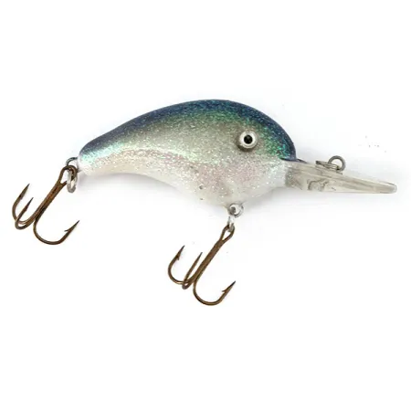 Tämän Strike King 4XD -uistimen yläosaa peittävät runsaat tealin ja smaragdinvihreän sävyiset kimallehiutaleet, jotka vaihtuvat saumattomasti hohtavaan helmiäisvatsaan. Painoa on 1/3 unssia (10 g) ja pituutta kompaktit 2 tuumaa (5 cm). Mallissa on tunnusomainen kookas kirkas uintilevy, joka on suunniteltu tavoittamaan 2,4–3,6 metrin (8–12 jalan) syvyysalueet. Malli 13828 on klassinen amerikkalaisvalmisteinen syvänneuistin, jossa on sisäinen räminäkammio helpottamaan kohdekalojen, kuten hauen ja kuhan, paikallistamista. Koukut ja renkaat ovat erinomaisessa kunnossa, ja alkuperäiset pronssiviimeistellyt kolmihaarakoukut ovat uudenveroiset. Kuntoluokitukseltaan 5/5 oleva uistin on viimeistelyltään kirkas, ja sen kimallepintaan on upotettu pienet hopeiset silmät mustilla pupilleilla. Tämä kelluva uistin on suunniteltu sekä heittokalastukseen että uisteluun, ja se on säilyttänyt alkuperäisen tehdasloistonsa koko rungon mitalta.