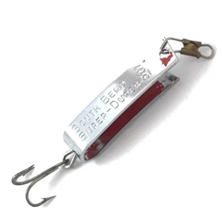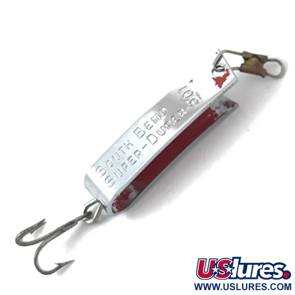 Nikkelipintaiseen metalliin on selvästi meistetty tunnistetiedot ”SOUTH BEND SUPER-DUPER 501”, mikä on merkki klassisesta amerikkalaisesta kalastusvälineinnovaatiosta vuosisadan puolivälistä. Tämä 3 cm (1 1/4") pituinen ja vain 2,3 g (3/32 oz) painava yksilö on ultra-light-sarjan malliesimerkki. Kääntöpuolella on tarkka etsaus patenttinumerosta 2,719,378, joka suojasi rungon erottuvaa taivutettua ”U”-muotoa. Kaaren sisäpuolella kirkkaanpunainen maali luo värikontrastin kiiltävää nikkeliä vasten, ja siinä on vain vähäistä kulumista uistinrasiassa vietetystä ajasta. Kuntoarviolla 5/5 varustettu lusikkauistin on täydellinen alkuperäisine leikareineen ja tukevine kolmihaarakoukkuineen. Tuotekoodilla 3829 tunnistettu rakenne heijastaa South Bendin ylläpitämiä korkeita valmistusstandardeja sen monipuolisessa lusikkasarjassa.
