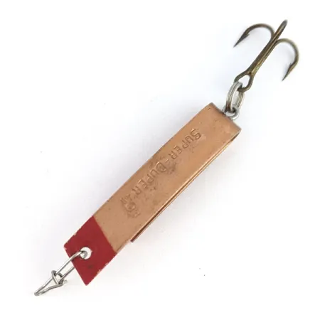 Kuparipinnoite peittää suurimman osan tästä 3,5 cm (1 1/2") metallivieheestä, jota korostaa etureunan selkeä punainen väritehoste. Tuotekoodilla 23374 tunnettu Luhr Jensen Super-Duper 503 hyödyntää ikonista U-muotoon taivutettua rakennetta, joka saa vieheen uimaan houkuttelevasti kelauksen aikana. 4,3 g (1/8 oz) painoisena se on monipuolinen valinta taimenen, ahvenen tai muiden pikkukalojen heitto- ja uistelukalastukseen. Pinta on erinomaisessa kunnossa (arvosana 5/5), ja valmistajan nimi sekä patenttileima erottuvat metallista selkeinä. Tämä vintage-yksilö on varustettu alkuperäisellä kolmihaarakoukulla ja viehelukolla, mikä ilmentää 1900-luvun puolivälin yhdysvaltalaisten kalastusvälineiden yksinkertaista mutta tehokasta rakennetta. Metallin taitos on suunniteltu tarkasti mahdollistamaan eloisa uintiliike pinnan alla ilman monimutkaisia sisäisiä osia.