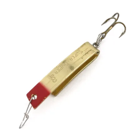 Tämän kultaisen Luhr Jensen -klassikon (tuotekoodi 23473) kärki on viimeistelty näyttävällä punaisella värillä. Tasan 3,5 cm (1 1/2") pituisessa uistimessa on sille ominainen U-muotoinen metallirunko, joka on suunniteltu heittokalastukseen tai vetouisteluun ohuilla siimoilla. Messinginväriseen pintaan on selvästi stanssattu mallinimi ”SUPER-DUPER 503” sekä yhdysvaltalainen patenttinumero 2 519 375, mikä on merkki sen amerikkalaisesta valmistusperinnöstä. Tämä yksilö on säilynyt erittäin kunniakkaassa 4/5-kunnossa; siinä näkyy vain vähäisiä iän tuomia jälkiä, ja alkuperäiset osat – mukaan lukien takakolmihaarakoukku ja etupään viehelukko – ovat täysin tallella. Vaikka Super-Duper yhdistetään perinteisesti lohikaloihin, sen yksinkertainen mutta tehokas muotoilu on pitkään ollut salainen ase myös ahvenen ja muiden pienten petokalojen kalastajille. 4,3 gramman (1/8 oz) paino tekee siitä ihanteellisen hienovaraiseen kalastukseen vesistöissä, joissa suositaan pienikokoista vieheprofiilia.