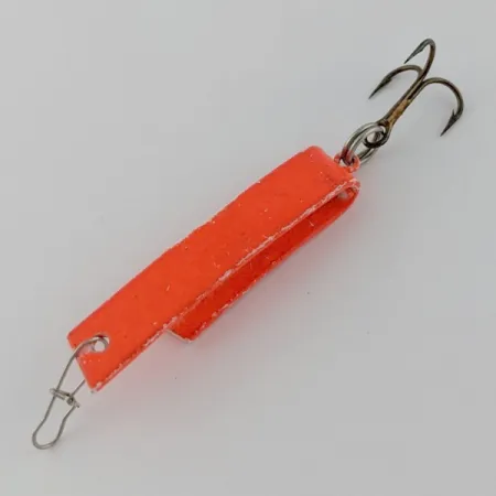Fluoresoiva kirkkaan vaaleanpunainen maali peittää tämän 1/8 oz (4,3 g) Luhr Jensen Super-Duper 503 -vieheen erottuvan taitetun metallirungon. Tuotekoodilla 24051 varustettu yksilö korostaa epätavallista U-muotoista muotoilua, joka on tehnyt mallista perusvarusteen amerikkalaisille lohenkalastajille. Tasan 3,5 cm (1 1/2 tuumaa) pitkä viehe on suunniteltu tarttumaan veteen ja luomaan uivan liikkeen joko uistellessa tai heitettäessä ohuella siimalla. Tämä Yhdysvalloissa valmistettu yksilö on kuntoluokitukseltaan 4/5, ja sen pinta on siisti, sisältäen vain vähäistä luonnollista kulumaa reunoilla. Se on varustettu alkuperäisillä osilla, mukaan lukien terävä kolmihaarakoukku ja etuosaan asennettu lukkoleikari. Vieheen käyttöalue ulottuu korkeiden vuoristojen lohijärviltä paikallisiin ahvenlampiin.