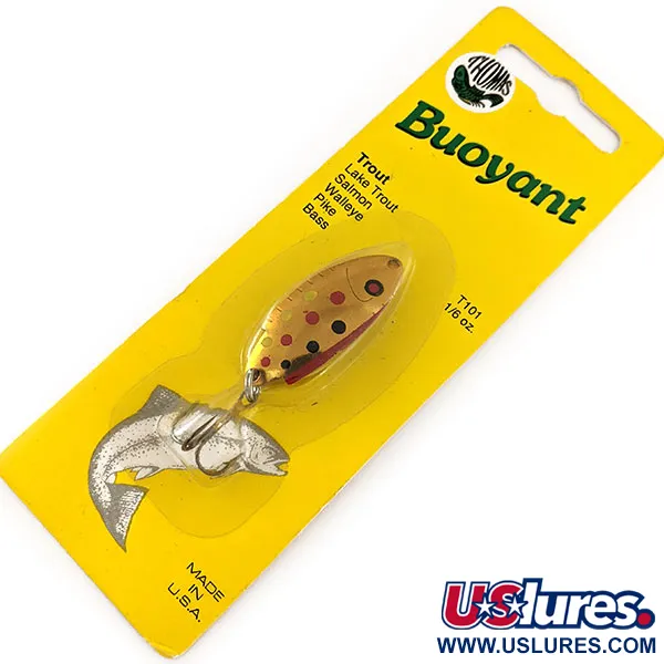 Tämä vintage-kuntoinen Thomas Buoyant -lusikkauistin on viimeistelty erottuvalla Copper Trout -kuviolla, jossa on mustia ja punaisia pisteitä kultaisen pohjan päällä, ja se on edelleen alkuperäisessä pakkauksessaan. Hawleyssa, Pennsylvaniassa valmistettu 4 cm (1 1/2") uistin on klassinen pala amerikkalaista kalastushistoriaa Thomas Spinning Lures, Inc:ltä. 4,7 g (1/6 oz) paino tekee siitä monipuolisen valinnan taimenen, lohen ja jopa kuhan kalastukseen erilaisissa olosuhteissa. Tässä nimenomaisessa yksilössä on tuotekoodi T101B-G, ja se on luokiteltu kuntoluokkaan 6, mikä tarkoittaa, että se on täysin käyttämätön eikä ole koskaan nähnyt vettä. Varustukseen kuuluu korkealaatuinen kolmihaarakoukku, joka on kiinnitetty tukevalla uistinrenkaalla, mikä on vakio näissä Hawleyssa valmistetuissa lusikoissa. Keltaisen taustapahvin takapuolella on yksityiskohtaiset ohjeet, joiden mukaan viehe on tehokas heitettynä poikkivirtaan joissa tai kelattuna eri syvyyksissä järvissä. Pakkauksen vasemmassa alakulmassa oleva "MADE IN U.S.A." -leima on osoitus merkin pitkästä valmistusperinteestä.