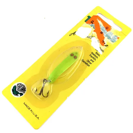 Eloisa chartreuse-viimeistely määrittelee tämän Thomas EEL -vieheen, tehden siitä erinomaisen valinnan hämäriin olosuhteisiin tai sameaan veteen. Tämä 1/8 oz (4 g) painava ja 1 3/4" (4,5 cm) pitkä kapea lusikka tunnistetaan tuotekoodilla 9837. Kaksi erottuvaa punaista pistettä toimivat silminä uistimen päässä, tarjoten kohdepisteen kirkkaan neonpinnoitteen päällä. Alkuperäisessä keltaisessa pahvissa on leima "MADE IN U.S.A.", ja yksilö on käyttämätön. Pakkauksen takapuolella on teknisiä neuvoja heittokalastukseen, suositellen sen antamista upota haluttuun syvyyteen tai käyttöä pilkkimiseen. Valmistaja Thomas Spinning Lures, Inc. Hawleyssa, Pennsylvaniassa; runkoon on kiinnitetty yksi kolmihaarakoukku.