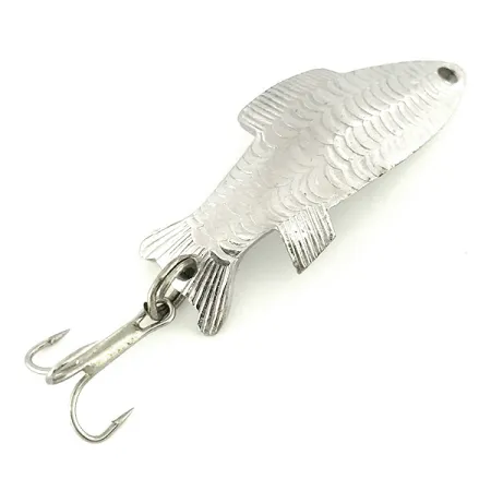 Koveralle kääntöpuolelleen painetulla ikonisella "FIGHTING FISH" -tekstillä varustettu yksilö edustaa sitä suoraviivaista toimivuutta, josta Thomas-vieheet tunnetaan. Painoltaan 1/4 unssia (7 g) oleva nikkeliviimeistely tarjoaa voimakkaan välkkeen kuperan puolen yksityiskohtaista suomukuviota vasten. Tämä Yhdysvalloissa valmistettu lusikkauistin on 1 1/2" (4 cm) pitkä, ja siinä on perinteinen kalanmuotoinen profiili heitto- ja uistelukalastukseen. Varusteluun kuuluu tukeva uistinrengas ja siisti kolmihaarakoukku, jotka säilyttävät tämän vintage-mallin eheyden. Tuotekoodilla 7241 varustettu viehe on erinomaisessa 5/5-kunnossa ja säilyttää kirkkaan metallisen hohdon. Pieni siimareikä kärjessä täydentää tämän perinteisen amerikkalaisen lusikan rakenteen.