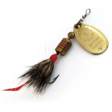 Museoarkisto: Mepps Aglia 1 dressed (squirrel tail) 1970s Lippa, Kulta, 3.5g, #9912