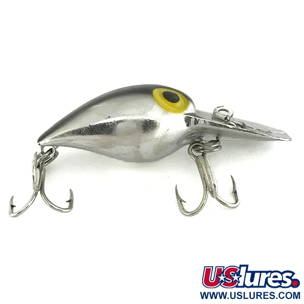 Erittäin heijastava Mirror Silver -viimeistely korostaa tämän kompaktin 4 cm (1 1/2") crankbaitin runkoa. Suurella uintilevyllä varustettu vaappu saavuttaa 2–4 metrin (6,5–13 ft) syvyyden heittokalastuksessa ja jopa 5 metrin (16 ft) syvyyden uistelussa. Tämä syvänneuistin on monipuolinen valinta lohen, ahvenen ja hauen kalastukseen. Suuret keltaiset silmät tummilla pupilleilla antavat sille Brad’s Killer -merkille tyypillisen ilmeen. Tämä Wee Wiggler (tuotekoodi 7229) painaa 8 g (1/4 oz) ja sisältää sisäänrakennetun räminäkuulan, joka tehostaa uintia sameassa vedessä tai hämärässä. Runko on vankka, ja metalliosat ovat kirkkaat ja toimivat. Vieheen kunto on erinomainen (5/5); pinta on hyvin hoidettu ja alkuperäinen kiilto on tallella niin peilimäisissä kyljissä kuin mustassa selässäkin.