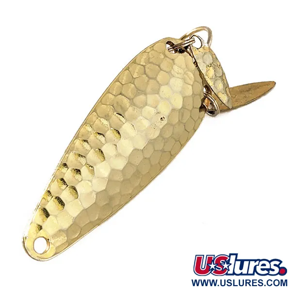 Vasaroidut kultapinnat vangitsevat valon kauniisti tässä 6 cm (2 1/4") vintage-löydössä. Tuotekoodia 11355 kantava 12 g (2/5 oz) Weedless Marathon -ruohikkolusikka on muotoiltu erityisesti kalastukseen tiheän kasvuston seassa. Takaosaan on kiinnitetty kaksi liikkuvaa äänilevyä, jotka luovat välkettä ja värinää auttaen samalla piilottamaan koukkurakenteen. Perinteinen ruohosuojus on integroitu suojaamaan koukkua, mikä tekee siitä sopivan heittämiseen kaislikoiden ja lumpeikkojen sekaan. Kääntöpuolella näkyy selvästi Wisconsinissa toimineen Marathon Bait Companyn leima; yritys valmisti amerikkalaisia kalastusvälineitä vuosina 1929–1979. Tämä yksilö on 5/5-kunnossa, ja kultapinta sekä osat ovat erittäin hyvin hoidettuja ja puhtaita. Pintakuviointi on suunniteltu maksimoimaan valon heijastus eri kulmista, mikä kuvastaa vuosisadan puolivälin vankkaa käsityötaitoa.