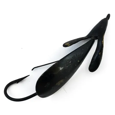 Tämä 9 gramman (1/3 oz) painoinen, muodoltaan erottuva metallilusikka on merkittävä osa Ohion kalastushistoriaa 1900-luvun puolivälistä. Johnnie O'Neil kehitti Weed Wingin vuonna 1957 Akronissa, Ohiossa, ja sai sille patentin vuonna 1962, ennen kuin malli siirtyi myöhemmin Harrison Industriesille. Tässä 6 cm (2 1/4") pitkässä yksilössä on kiinteä musta viimeistely. Se on suunniteltu kalastukseen paksun kasvuston seassa integroidun teräksisen ruohosuojan ansiosta, joka suojaa yksihaarakoukkua. O'Neilin muotoilun tunnusmerkkinä ovat ainutlaatuiset "siivet" lähellä siiman kiinnityslenkkiä, ja tuote on listattu koodilla 5066. Runkoon stanssatut merkinnät vahvistavat valmistusmaaksi USA:n. Mustassa pinnoitteessa on hieman kulumista reunoilla, mikä kertoo ajasta vieherasiassa, mutta metalli ja osat ovat tukevia, ja kuntoarvio on 4/5.