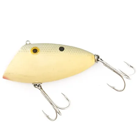 Tämän klassisen 6,5 cm (2 1/2") rungon vaalea kermanvärinen pinta vaihtuu hienojakoiseksi verkkomaiseksi suomukuvioksi selkälinjaa pitkin. Painoltaan 14 g (1/2 oz) oleva Whopper Stopper Bayou Boogie (tuotekoodi 23278) on varustettu tunnusomaisella punaisella leualla, joka on tyypillinen visuaalinen piirre monissa amerikkalaisissa huulettomissa vaapuissa. Käsinmaalatut keltaiset silmät suurilla mustilla pupilleilla luovat voimakkaan kontrastin, jota täydentää kyljen takaosassa sijaitseva tumma piste. Yhdysvalloissa valmistetun yksilön kuntoluokitus on 4/5, ja siinä on havaittavissa iän tuomia vähäisiä jälkiä metalliosien ollessa edelleen kunnossa. Kaksi alkuperäistyylistä kolmihaarakoukkua on kiinnitetty tukevilla lenkeillä vatsaan ja pyrstöön, tehden siitä hienon lisän vuosisadan puolivälin kalastusvälinekokoelmaan.