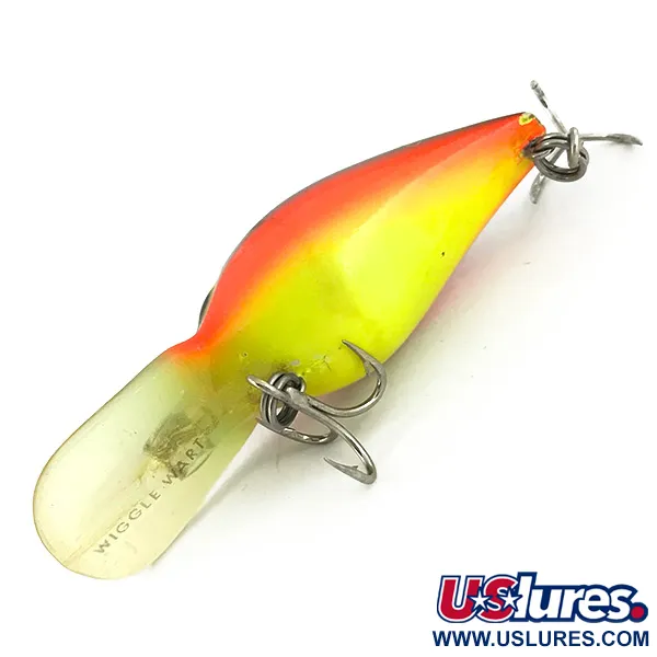 Kirkas AV68-väritys määrittelee tämän UV-reaktiivisen yksilön, jossa on liukuväri syvänvihreästä selästä siniseen, siirtyen punaisen keskiosan kautta neonkeltaiseen vatsaan. Tämä Storm Wiggle Wart UV (tuotekoodi 7328) painaa 12 g (2/5 oz) ja on pituudeltaan 5 cm (2"). Kyseessä on erikoistunut syvännevaappu, joka on suunniteltu saavuttamaan 2 m - 5,5 m (6,5 ft - 18 ft) syvyys heitto- tai uistelusessioissa. Kunto on erinomainen 5/5; viimeistely on säilynyt kirkkaana ja koukut, mukaan lukien kaksi hopeista kolmihaarakoukkua, eivät osoita kulumisen merkkejä. Alkuperäinen "Wiggle Wart" -brändäys on selvästi leimattu kirkkaan uintilevyn alapuolelle. Sisäiset räminäkuulat luovat meluisan profiilin, joka on tarkoitettu lohen, ahvenen, kuhan ja hauen pyyntiin. Suuret, keltareunaiset silmät mustilla pupilleilla ovat tämän Yhdysvalloissa valmistetun sarjan klassinen tuntomerkki.