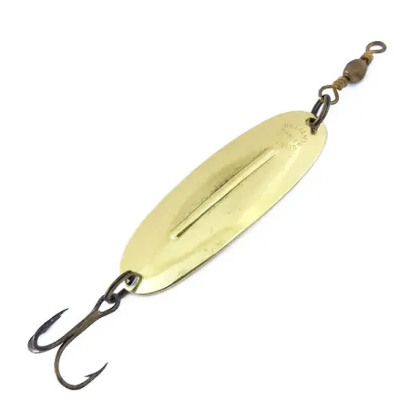 Tämän 5,7 cm (2 1/4") lusikkauistimen keskellä kulkee selvästi erottuva vakauttava harjanne, joka on tunnusomainen piirre ja pitänyt Williams Wabler -mallin kalastuspakkiensa kärjessä jo yli vuosisadan ajan. Tämän 7 g (1/4 oz) uistimen kiillotettu kultaus ei näytä kulumisen merkkejä, ja se on erinomaisessa 5/5-kunnossa. Williams esitteli Wabler-mallin ensimmäisen kerran vuonna 1920. Alun perin valmistusta oli sekä Buffalossa että Kanadassa, mutta tämä yksilö (tuotekoodi 10787) edustaa kanadalaista valmistusta, josta tuli yksinoikeudellista vuonna 1978. Ensisijaisesti hauelle ja kuhalle suunniteltu W40:n ainutlaatuinen geometria on kehitetty säilyttämään vakaa uinti heitossa ja uistelussa eri nopeuksilla. Tummalla viimeistelyllä varustettu kolmihaarakoukku on terävä, ja se on yhdistetty pään vintage-leikariin siiman kiertymisen estämiseksi.
