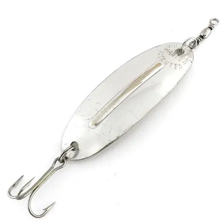 Tämä 14 gramman (1/2oz) yksilö, jonka takapuolelle on selkeästi stanssattu ”MADE IN CANADA”, edustaa Williams Wabler W50 -mallin (tuotekoodi 8838) pitkää perintöä. Nikkeliviimeistely 6,7 cm:n (2 3/4") rungossa antaa kirkkaan, heijastavan pinnan, joka on ominaista merkin korkealaatuiselle pinnoitteelle. Keskellä oleva pitkittäinen harjanne toimii vakauttajana. Tämä tekninen ominaisuus on suunniteltu pitämään vieheen uinti vakaana eri kelausnopeuksilla ilman, että se alkaa pyöriä ympäri. Ylemmän kiinnityslenkin lähellä oleva ”WABLER PATENTED” -leima on terävä ja luettavissa. Viehe on varustettu tukevalla kolmihaarakoukulla ja tynnyrileikarilla, joka auttaa hallitsemaan siiman kiertymistä heitossa tai uistelussa. Metallipinta on erittäin puhdas ja hyvin säilynyt (kuntoarvio 5/5). Alun perin vuonna 1914 suunniteltu W50-malli on edelleen hauen ja kuhan kalastajien luottoviehe sen varman uinnin ansiosta.