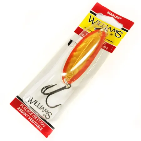 W50-sarja painaa 1/2 oz (14 g) ja on edelleen vakiovaruste kalastajille, jotka tavoittelevat petokaloja, kuten haukea tai kuhaa. Runkoa peittää upea 24 karaatin kulta- ja hopeapinnoitteen yhdistelmä, jota täydentää kirkkaanpunainen UV-valoon reagoiva reuna, mikä lisää näkyvyyttä sameassa vedessä. Keskellä kulkeva selkeä vakauttava harjanne on Wabler-muotoilun tunnusmerkki, ja se on suunniteltu säilyttämään tasapaino sekä hitaassa että nopeassa kelauksessa. Lusikka on 2 3/4" (6,7 cm) pitkä, ja sen takapuolella on klassinen Williams-leima, joka vahvistaa aitojen jalometallipinnoitteiden käytön ja tarjoaa ainutlaatuisen heijastuskyvyn. Tämä nimenomainen yksilö, tuotekoodiltaan 1730, on käyttämätön alkuperäisessä pakkauksessaan. Varustukseen kuuluu vankka musta kolmihaarakoukku, joka on kiinnitetty järeällä uistinrenkaalla, mikä on osoitus kanadalaisista valmistusstandardeista, jotka ovat määrittäneet tuotemerkkiä jo lähes vuosisadan ajan.