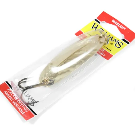 Tämä 21 gramman (3/4 oz) kanadalainen klassikko loistaa aidolla kultauksella ja sen pinnassa on erottuva hunajakennokuvio. Williams Wabler W60 (tuotekoodi 1763) on varustettu tunnusomaisella pitkittäisellä vakautusharjanteella, joka kulkee koko 8,2 cm (3 1/4") rungon mitalta. Tässä mallissa on 24 karaatin kultaus, joka on Williams Internationalin ensiluokkainen valinta takaamaan korkean heijastavuuden ja kestävyyden. Käyttämättömänä uistimena pinta säilyttää alkuperäisen tehdaskiiltonsa. Lusikka on varustettu pronssatulla kolmihaarakoukulla ja vahvoilla uistinrenkailla, mikä tekee siitä vankan valinnan heitto- tai vetouisteluun hauen ja harmaunieriän pyyntiin.