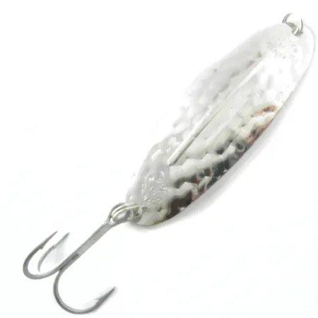 Tämä 21 grammaa (3/4 oz) painava Williams Wabler W60 on viimeistelty vasaroidulla hopealla, joka luo klassisen tekstuurin heijastamaan valoa eri syvyyksissä. Tunnisteella 3824 varustettu uistin on pituudeltaan 6,2 cm (2 1/2"), ja siinä on sille ominainen pitkittäisharjanne, joka kulkee koko rungon mitalle. Tämä tekninen elementti on suunniteltu takaamaan vakaus sekä nopeassa että hitaassa kelauksessa. Taustapuolen metalliin lyödyt merkinnät "MADE IN CANADA" ja "WABLER" vahvistavat sen aidon alkuperän. Lusikka on pinnoitettu aidolla hopealla, mikä on valmistajan tavaramerkki näkyvyyden maksimoimiseksi haukea tai kuhaa pyydettäessä. Varustukseen kuuluu vankka kolmihaarakoukku, joka on kiinnitetty uistinrenkaalla alkuperäisen kokoonpanon säilyttämiseksi. Tämä yksilö on 5/5-kunnossa, ja siinä on kirkas, puhdas pinta ja hyvin säilyneet reunat. Lusikan tasapaino keskittyy kohotetun keskiharjanteen ympärille, mikä pitää uinnin vakaana heitossa ja uistelussa.