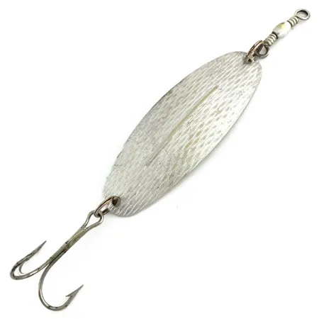 Tämän klassisen kanadalaisen lusikkauistimen profiilia luonnehtivat vakuuttava 10 cm:n (4 tuuman) pituus ja 28 g:n (1 oz) paino. Williams Wabler W70, tuotekoodiltaan 9292, on viimeistelty aidolla vasaroidulla hopeoinnilla, joka antaa selkeät heijastukset pinnan alla. Lusikan keskellä kulkee näkyvä pitkittäinen harjanne, joka on suunniteltu säilyttämään vakaus sekä nopeassa että hitaassa kelauksessa. Tämä yksilö on erinomaisessa kunnossa (arvosana 5/5), ja sen tekstuuroitu pinta sekä osat ovat puhtaat ja hyvin säilyneet. Se on varustettu tukevalla kolmihaarakoukulla perässä ja tynnyrileikarilla päässä. Nämä komponentit on suunniteltu kestämään suuren hauen tai harmaanieriän aiheuttamaa painetta. Vasaroidun pinnan tarkoituksena on rikkoa valon välähdyksiä ja jäljitellä syöttikalan suomuja luonnollisemmin kuin sileä pinta.