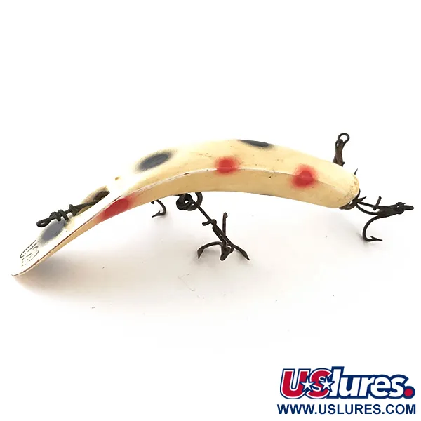 Kermanvärinen pohja, jota korostavat suuret mustat ja punaiset täplät, tekee tästä yksilöstä näyttävän lisän mihin tahansa kokoelmaan. Pituudeltaan 9 cm (3 1/2") ja painoltaan 9 g (1/3 oz) oleva viehe omaa Yakima Bait Worden Flatfish -sarjalle ominaisen kaarevan rungon. Tuotekoodilla 4791 tunnistettava malli on varustettu perinteisellä monikoukkuisella levitinhärvelillä, joka on suunniteltu hitaaseen uittoon. Viimeistely on edelleen kirkas ja puhdas, saaden kuntoluokitukseksi 4/5, ja metalliosat osoittavat vintage-alkuperäänsä ollen silti kestäviä. Keräilijät arvostavat käsinmaalattua täpläkuviota, joka seuraa rungon muotoja kohti kapenevaa pyrstöä.