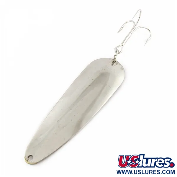 Tämän amerikkalaisvalmisteisen lusikkauistimen 9 cm pitkässä rungossa on kiillotettu nikkelipinnoite, joka heijastaa valoa tehokkaasti. Tämä 21 gramman (3/4 oz) painoinen Worth Chippewa on klassinen esimerkki wisconsinilaisen Worth Companyn kestävästä metallityöstä. Pisaranmuotoisen rungon reunat on meistetty siististi, ja sen peräpäässä on vahva kolmihaarakoukku tukevassa uistinrenkaassa. Uistimen kärjessä on siististi porattu reikä siiman tai perukkeen kiinnittämistä varten. Tuotekoodilla 24315 tunnistettava yksilö on hienossa kunnossa (kuntoluokitus 4/5), ja sen pinta on kirkas ja heijastava. Chippewan yksinkertainen ja toimiva muotoilu edustaa vuosisadan puolivälin tyyliä heitto- ja vetouisteluun suurille makeanveden kaloille, joissa näkyvyys ja paino olivat keskeisiä tekijöitä.
