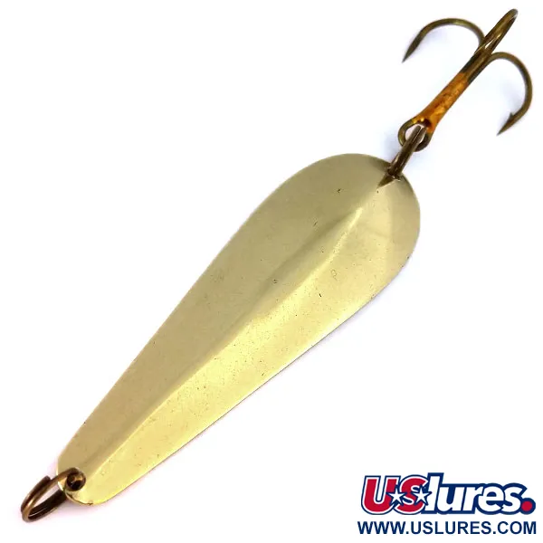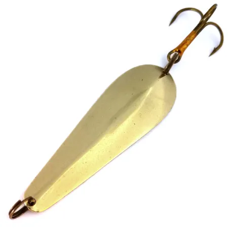Messinginhohto heijastaa valoa tämän 11g (2/5oz) lusikkauistimen solakassa, pitkänomaisessa rungossa. Sisäpuolen koveraan pintaan selkeästi stanssattu Wright & McGill -leima tunnistaa uistimen aidoksi Streamliner-malliksi, joka on klassinen esimerkki vuosisadan puolivälin yhdysvaltalaisesta käsityötaidosta. Pituudeltaan 6 cm (2 1/4") oleva lusikka on huomattavan paksu, mikä on tarkoitettu pitkiin heittoihin. Tässä tuotekoodilla 10364 tunnistetussa yksilössä on alkuperäiset varusteet, mukaan lukien pronssattu kolmihaarakoukku ja kestävät uistinrenkaat. Metallipinta on säilynyt poikkeuksellisen hyvin suippenevassa lavassa, mikä oikeuttaa 5/5 kuntoluokitukseen. Jokainen kaarre heijastaa valmistusmaansa Yhdysvaltojen laatuvaatimuksia, selkeistä merkkikirjaimista metallin yhtenäiseen muotoon.