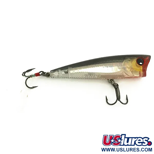 Tämä 7,5 cm (3") pitkä, Japanissa valmistettu pintaviehe sisältää erottuvan koveran punaisen suun, joka on suunniteltu nollasyvyyden pintakalvopresentaatioon. 10 g (1/3 oz) painava Yo-Zuri 3DB Popper (tuotekoodi 6967) hyödyntää merkin sisäistä 3D-prismaviimeistelyä, joka heijastaa valoa läpikuultavan rungon läpi. Tumma hiilenharmaa selkä kontrastoi kirkkaiden kylkien kanssa, ja kirkkaankeltaiset yksityiskohdat korostavat suuria, realistisia silmiä. Tämä Japanissa valmistettu yksilö on erinomaisessa 5/5-kunnossa ja siinä on terävät mustanikkeli-kolmihaarakoukut. Pyrstökoukussa on hienovarainen puna-vihreä sidos, jota suositaan usein ahvenen, hauen tai toutaimen kalastuksessa. Kirkkaan muovirungon läpi näkyvä sisäinen uritus lisää Duel/Yo-Zuri-sarjalle ominaista rakenteellista syvyyttä.