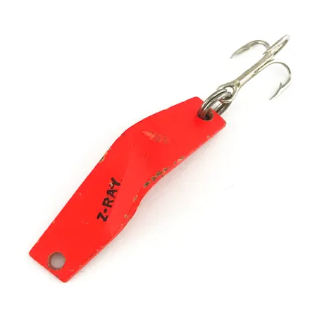 Fluoresoiva vaaleanpunainen maali peittää meistetyn metallirungon, mikä takaa hyvän näkyvyyden tavoiteltaessa taimenta tai ahvenkaloja sameissa vesissä. Selkeä musta "Z-RAY"-leima on nähtävissä 3,6 cm (1 1/2") pituisen lipan kyljessä, mikä tunnistaa sen klassiseksi yhdysvaltalaisen Z-RAY Lures -merkin tuotteeksi. Varustukseen kuuluu tukeva uistinrengas ja terävä kolmihaarakoukku, joiden myötä kokonaispaino on kevyt 3,6 g (1/8 oz). Sen erottuva taivutettu profiili on suunniteltu heittämiseen, ja päässä oleva yksi silmukka on tarkoitettu siiman suoraan kiinnittämiseen. Tämä uistin, tuotekoodiltaan 7317, on erinomaisessa kunnossa (arvosana 5/5), ja siinä on vain vähäisiä merkkejä käsittelystä vuosien varrelta.