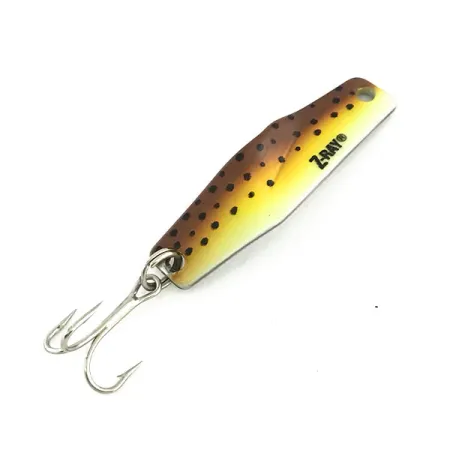 Tämä 4 g (1/8 oz) painava, Yhdysvalloissa valmistettu metallilusikka on varustettu klassisella taimenvärityksellä, jossa keltainen vatsa vaihtuu tummanruskeaan selkään mustilla pilkuilla. Uistin on 4 cm (1 1/2") pitkä, ja Z-RAY®-tavaramerkki on lyöty suoraan maalattuun pintaan lähelle päätä. Tämä tuotekoodilla 9270 tunnistettu yksilö on käyttämätön. Vieheessä on yksi kolmihaarakoukku, joka on kiinnitetty uistinrenkaalla perään, ja lusikan kääntöpuoli on puhdasta, kiillotettua hopeaa. Kapeassa päässä oleva tarkasti porattu reikä takaa siiman varman kiinnityksen heitto- tai vetouistelussa.