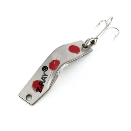 Nikkelöity ja kolmella kirkkaanpunaisella täplällä varustettu lusikkauistin heijastaa amerikkalaisia juuriaan. Tämä 4 cm:n pituinen Z-Ray-viehe, tuotekoodiltaan 9896, on arvostettu valinto kalastajille, jotka tavoittelevat taimenta tai ahventa kevyillä välineillä. Yhdysvalloissa valmistetussa vieheessä on uniikisti taivutettu runko ja terävä kolmihaarakoukku, joka on kiinnitetty uistinrenkaalla. Z-RAY®-brändäys on selkeästi meistetty metalliin, aivan punaisten väripisteiden väliin, jotka toimivat iskupisteinä kiiltävää pintaa vasten. Painoltaan 4 g painava kompakti profiili on ihanteellinen pitkiin heittoihin tai hallittuun jigaukseen. Tämä yksilö on 5/5-kunnossa, ja siinä on säilynyt upea kiilto sekä tarkat väriyksityiskohdat koko pinnalla. Päädyssä on pieni reikä siiman suoraa kiinnitystä tai pientä lukkoa varten, kun taas kääntöpuoli on jätetty pelkäksi kiillotetuksi nikkelipinnaksi.