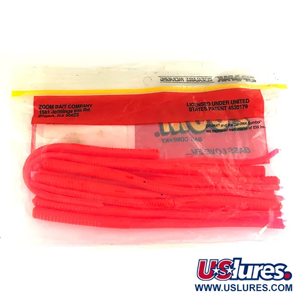 Nämä 15 cm (6") pehmomadot edustavat klassista finesse-profiilia, joka auttoi Zoom Bait Companya nousemaan kalastajien luottomerkiksi. Erittäin näkyvä Merthiolate-väri on erityinen neon-sävy, jota käytetään usein näkökalastuksessa kutupatilla tai sameissa olosuhteissa, joissa vieheen visuaalinen seuranta on välttämätöntä. Osana Super Salt Plus -sarjaa materiaali on voimakkaasti suolakäsiteltyä, mikä vaikuttaa vieheen kelluvuuteen ja rakenteeseen. Tämä pakkaus (tuotekoodi 6838) sisältää 12 käyttämätöntä yksilöä, joissa on säilynyt alkuperäinen notkeus ja eloisa väritys. Valmistettu Yhdysvalloissa. Vieheessä on erottuva uritettu runko, joka kapenee kärkeä kohti, ja se soveltuu erinomaisesti ohuille koukuille, kuten shaky head- tai painottomiin rigauksiin. Vieheet ovat käyttämättömiä.